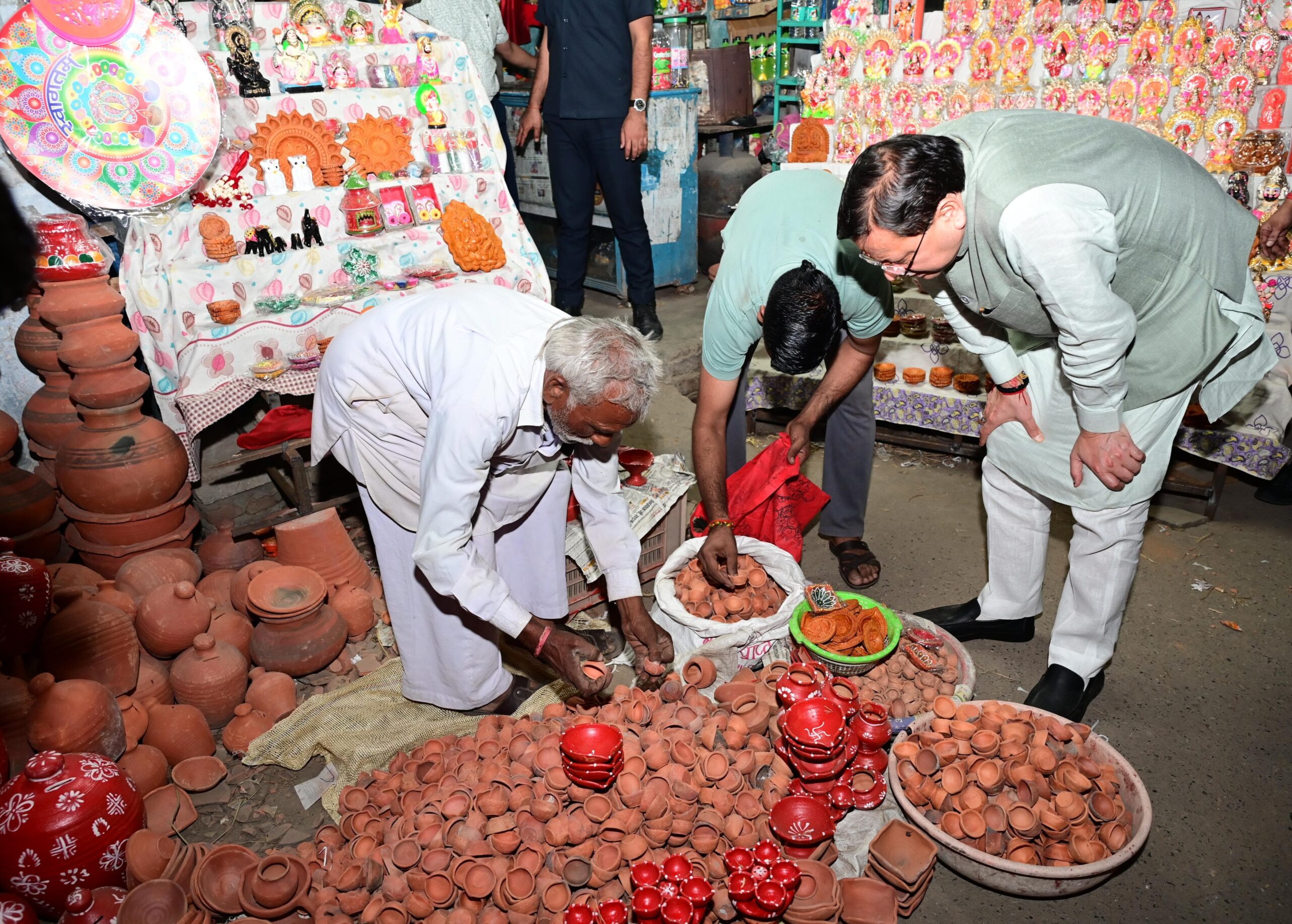 मुख्यमंत्री श्री पुष्कर सिंह धामी ने आज अपने गृह क्षेत्र खटीमा में ‘स्वदेशी अपनाओ’ अभियान के तहत पारंपरिक मिट्टी के दियों और स्थानीय रूप से निर्मित वस्तुओं की खरीदारी की।