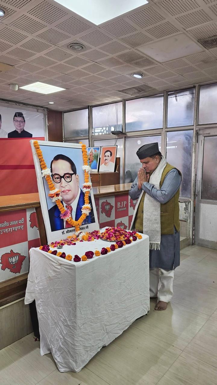 भाजपा प्रदेश कार्यालय में आज भारत रत्न डॉ. बीआर अंबेडकर की पुण्यतिथि महापरिनिर्वाण दिवस पर उन्हें नमन किया गया। इस दौरान प्रदेशाध्यक्ष एवं राज्यसभा सांसद श्री महेंद्र भट्ट ने उनके चित्र पर पुष्प अर्पित करते हुए श्रद्धांजलि। इस दौरान मीडिया से बात करते हुए कहा कि महापरिनिर्वाण दिवस पर आज प्रदेशभर में कार्यकर्ताओं द्वारा डॉ. बाबासाहेब अंबेडकर के योगदान को स्मरण किया गया। उनकी दूरदर्शी सोच, न्याय और समानता के प्रति अटूट प्रतिबद्धता तथा संवैधानिक मूल्यों ने भारत की विकास यात्रा को दिशा दी है। उनके द्वारा सृजित संविधान की छत्रछाया में आज देश में लोकतंत्र पुष्पलवित हो रहा है।