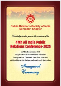 उत्तराखंड के मुख्यमंत्री पुष्कर सिंह धामी ने 47वीं ऑल इंडिया पब्लिक रिलेशंस कॉन्फ्रेंस-2025 का उद्घाटन किया। इस तीन दिवसीय सम्मेलन का मुख्य विषय “विकसित भारत @2047: विकास भी, विरासत भी” है। मुख्यमंत्री ने कहा कि पब्लिक रिलेशंस केवल सूचना संप्रेषण का माध्यम नहीं है, बल्कि राष्ट्र निर्माण की प्रक्रिया का एक महत्वपूर्ण और प्रभावी अंग है। मुख्यमंत्री ने कहा कि सरकार और जनता के बीच सही, समयबद्ध और भरोसेमंद संवाद स्थापित करना जनसंपर्क की सबसे बड़ी जिम्मेदारी है। उन्होंने कहा कि आपदा प्रबंधन, सुशासन, धार्मिक एवं पर्यटन प्रबंधन जैसे क्षेत्रों में भविष्य की पीआर प्रणाली को तेज, तकनीकी रूप से सक्षम और जनभावनाओं के प्रति संवेदनशील बनाना होगा। इसका मुख्य उद्देश्य जनसंपर्क के क्षेत्र में नवाचार और उत्कृष्टता को बढ़ावा देना, विकसित भारत @2047 की दृष्टि को साकार करने में जनसंपर्क की भूमिका पर चर्चा करना है। मुख्यमंत्री ने दीप प्रज्वलन कर सम्मेलन का शुभारंभ किया तथा कॉन्फ्रेंस स्थल पर आयोजित फोटो प्रदर्शनी का अवलोकन करने के साथ ही विभिन्न हस्तशिल्प उत्पादों के स्टॉल का निरीक्षण कर स्थानीय कला एवं शिल्प को प्रोत्साहन दिया। देहरादून 13 से 15 दिसंबर तक 47वीं ऑल इंडिया पब्लिक रिलेशंस कॉन्फ्रेंस की मेज़बानी कर रहा है, जिसमें देशभर के जनसंपर्क एवं कम्युनिकेशन प्रोफेशनल्स भाग ले रहे हैं। इस अवसर पर अपर सचिव और सूचना महानिदेशक बंशीधर तिवारी को पीआरएसआई द्वारा सुशासन में उत्कृष्टता हेतु राष्ट्रीय सम्मान प्रदान किया गया।