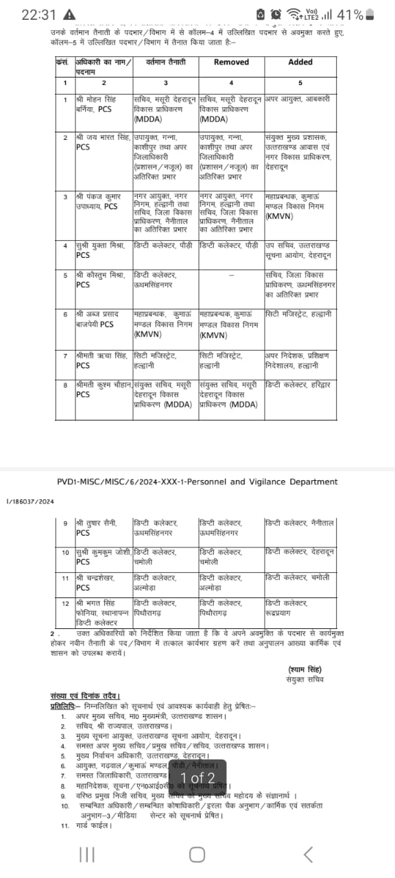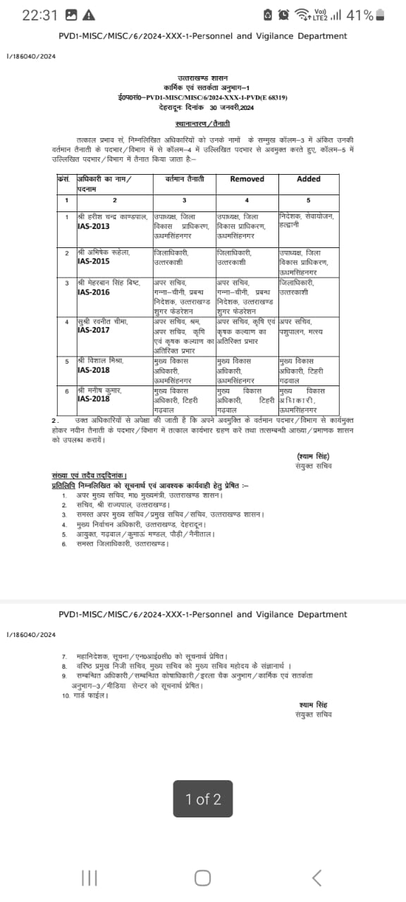 लोकसभा चुनाव से पहले नौकरशाही में बड़ा फेरबदल Posted on January 30, 2024January 30, 2024 by AJAY PANDEY 1 min read लोकसभा चुनाव से पहले नौकरशाही में बड़ा फेरबदल 6 इस और 12 पीसीएस अफसर के तबादले मेहरबान बिष्ट बनाए गए डीएम उत्तरकाशी आइएएस अभिषेक रुहेला को जिलाधिकारी उत्तरकाशी के पद से हटाया आइएएस हरिश्चंद्र कांडपाल को निदेशक सेवायोजन हल्द्वानी का चार्ज